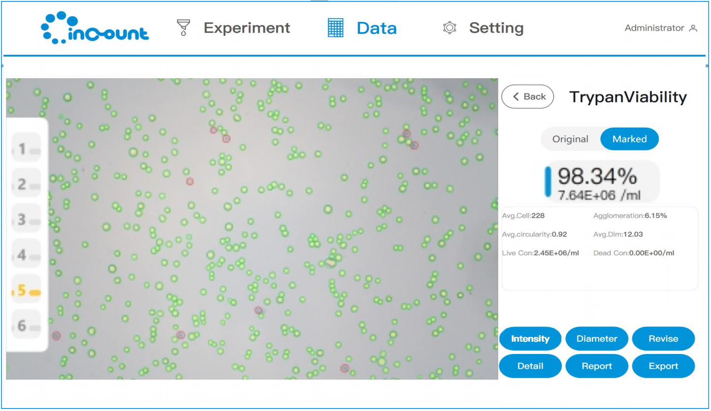 INCount is an automated cell counter integrated with high resolution imaging, accurate counting, and intelligent analysis. With its deeplearning intelligent recognition algorithm, INCount can accurately segmentcell clusters which leads to accurate counting. You can get